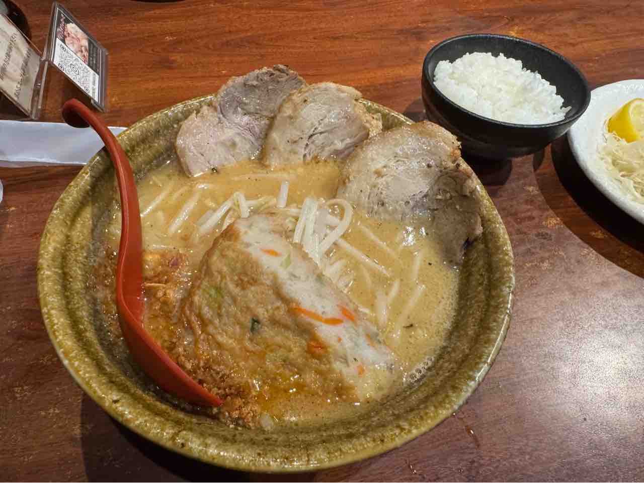 味噌ラーメンのお店で、自分は九州味噌ベースを注文。