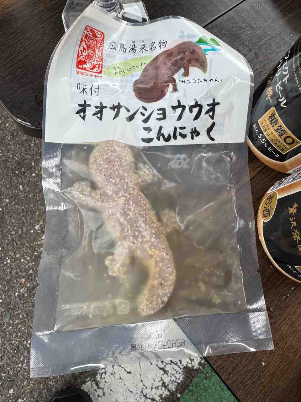 お土産で頂いた、オオサンショウウオこんにゃく。笑