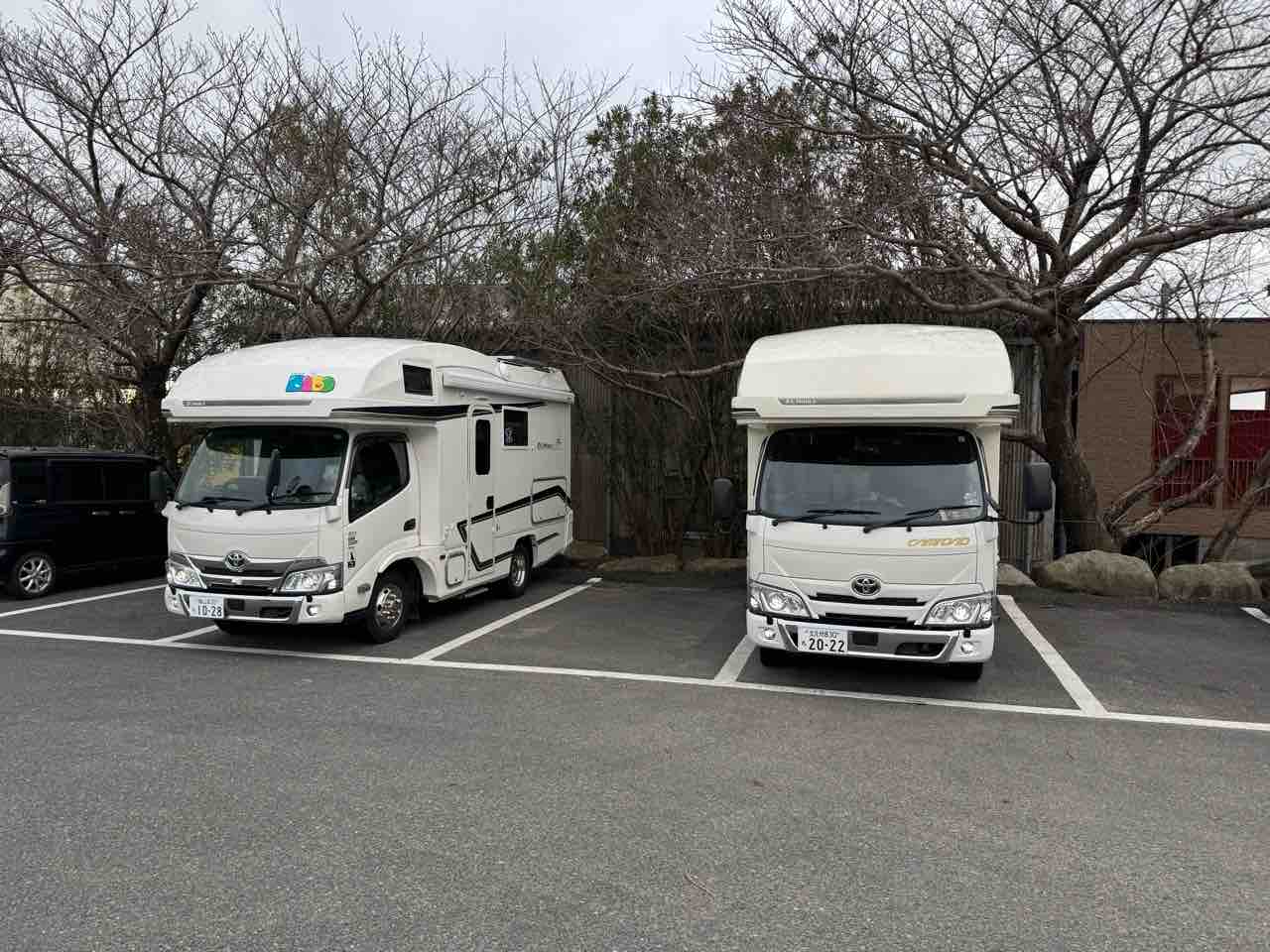この駐車場はバスまで入れるので、キャンピングカーは問題ないのですが、