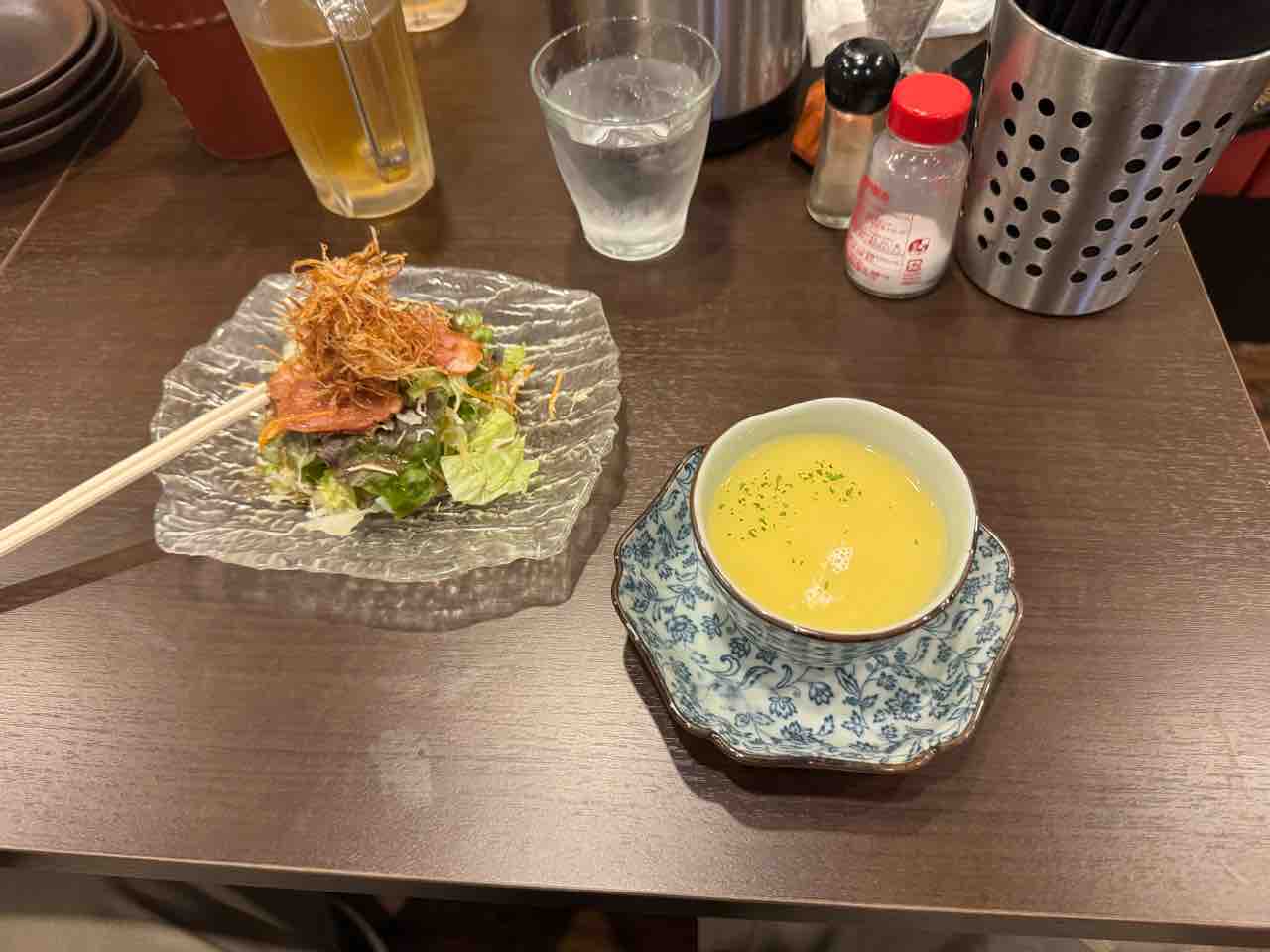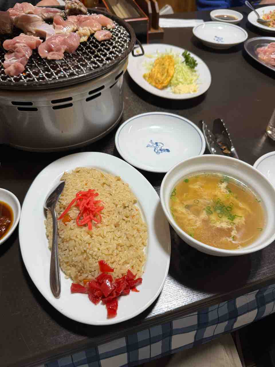 スープと鳥めしと焼鳥で1100円ちょっと