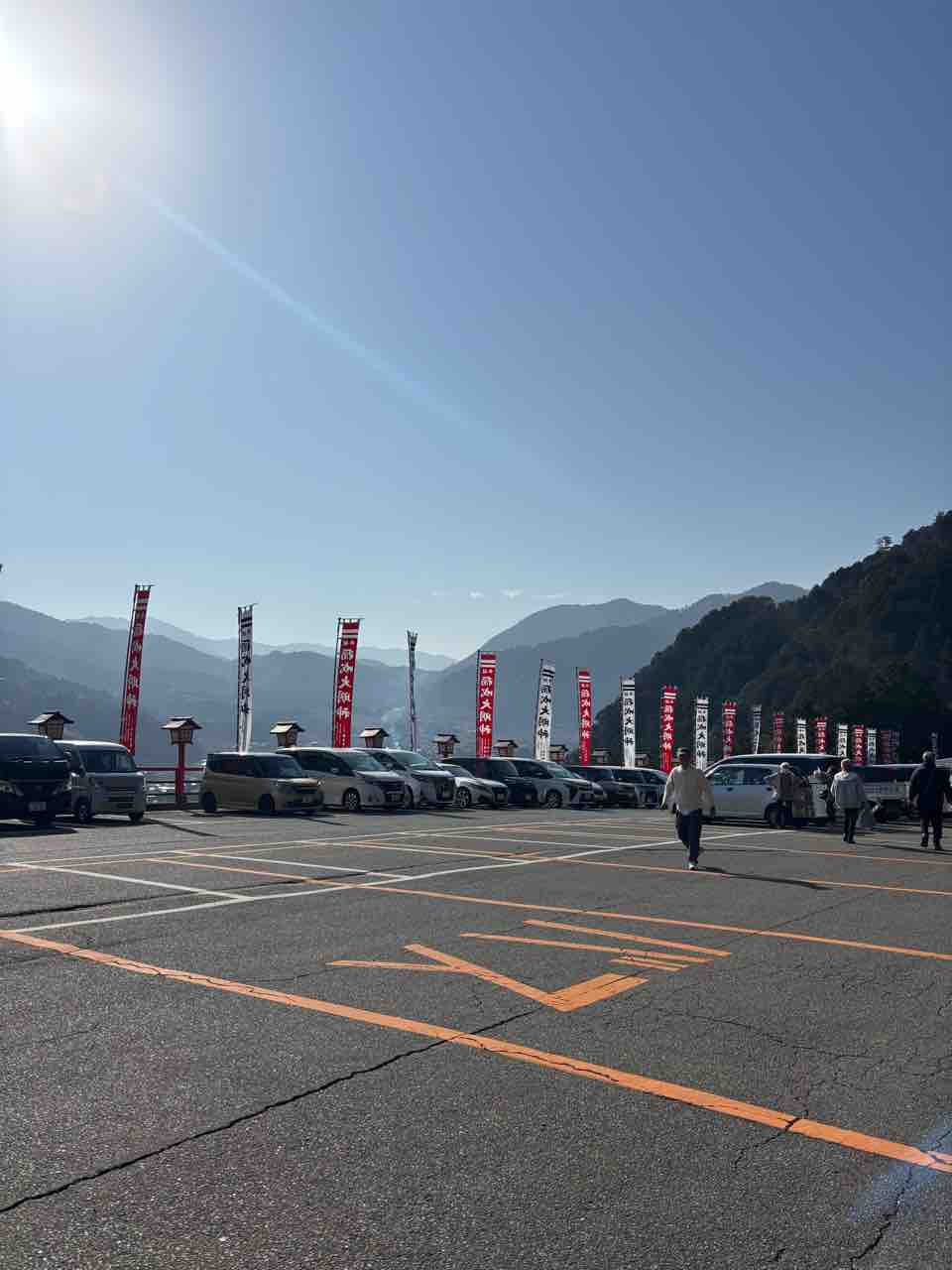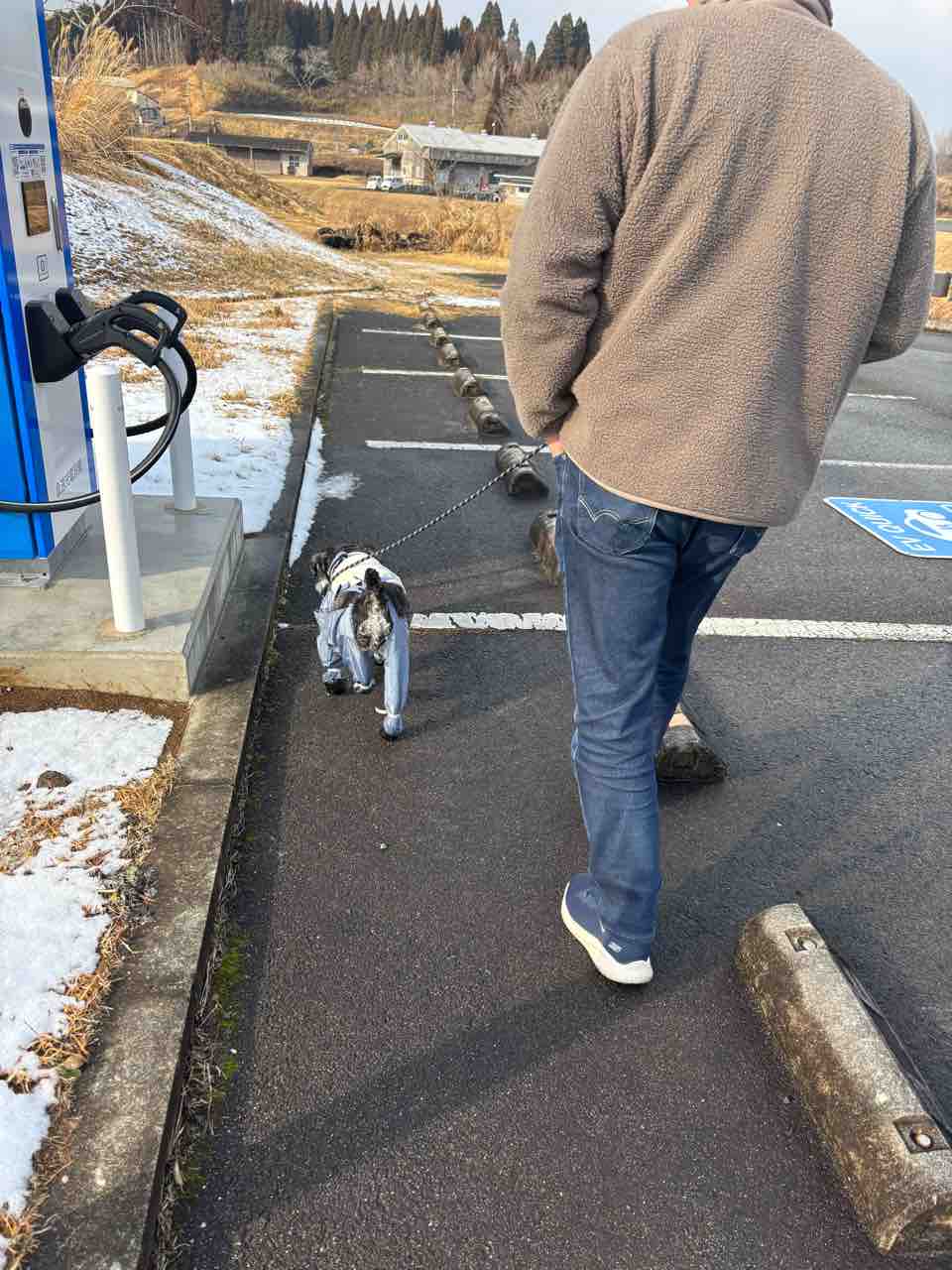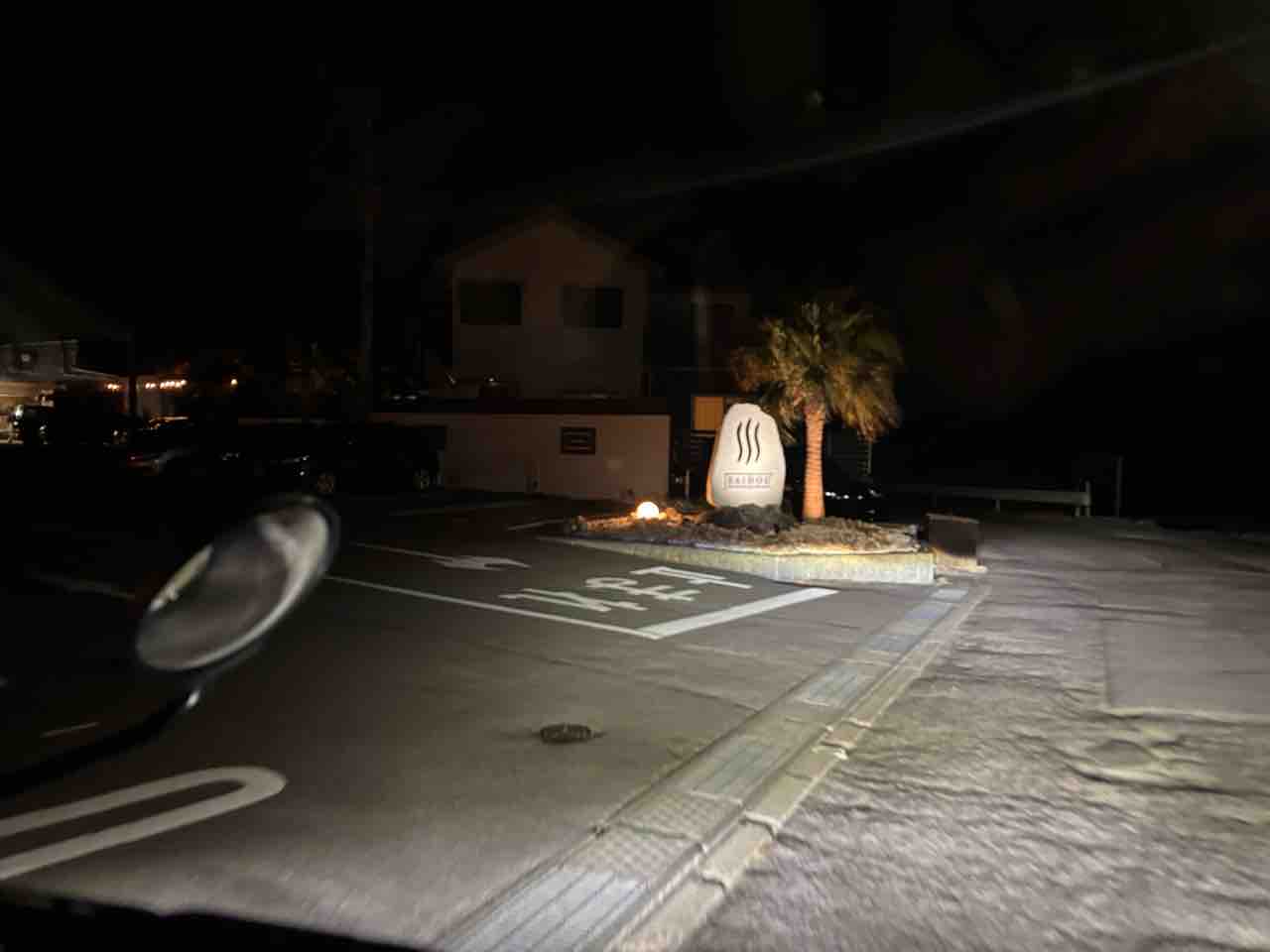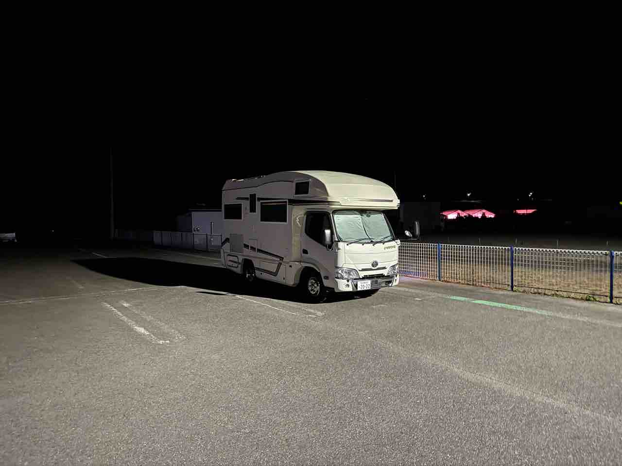 キャャンピングかーなので、離れた大きな駐車場に停めてきたので、