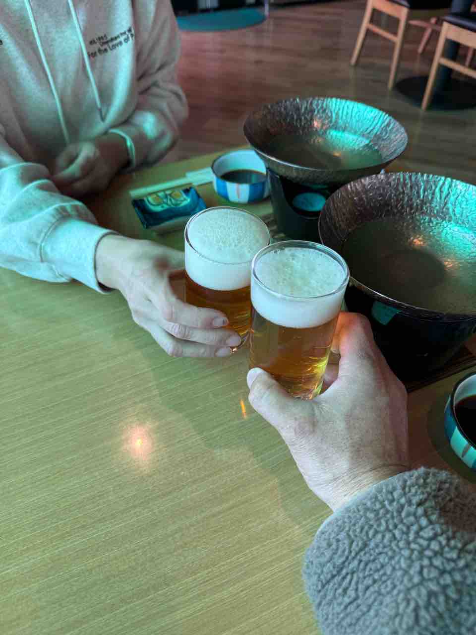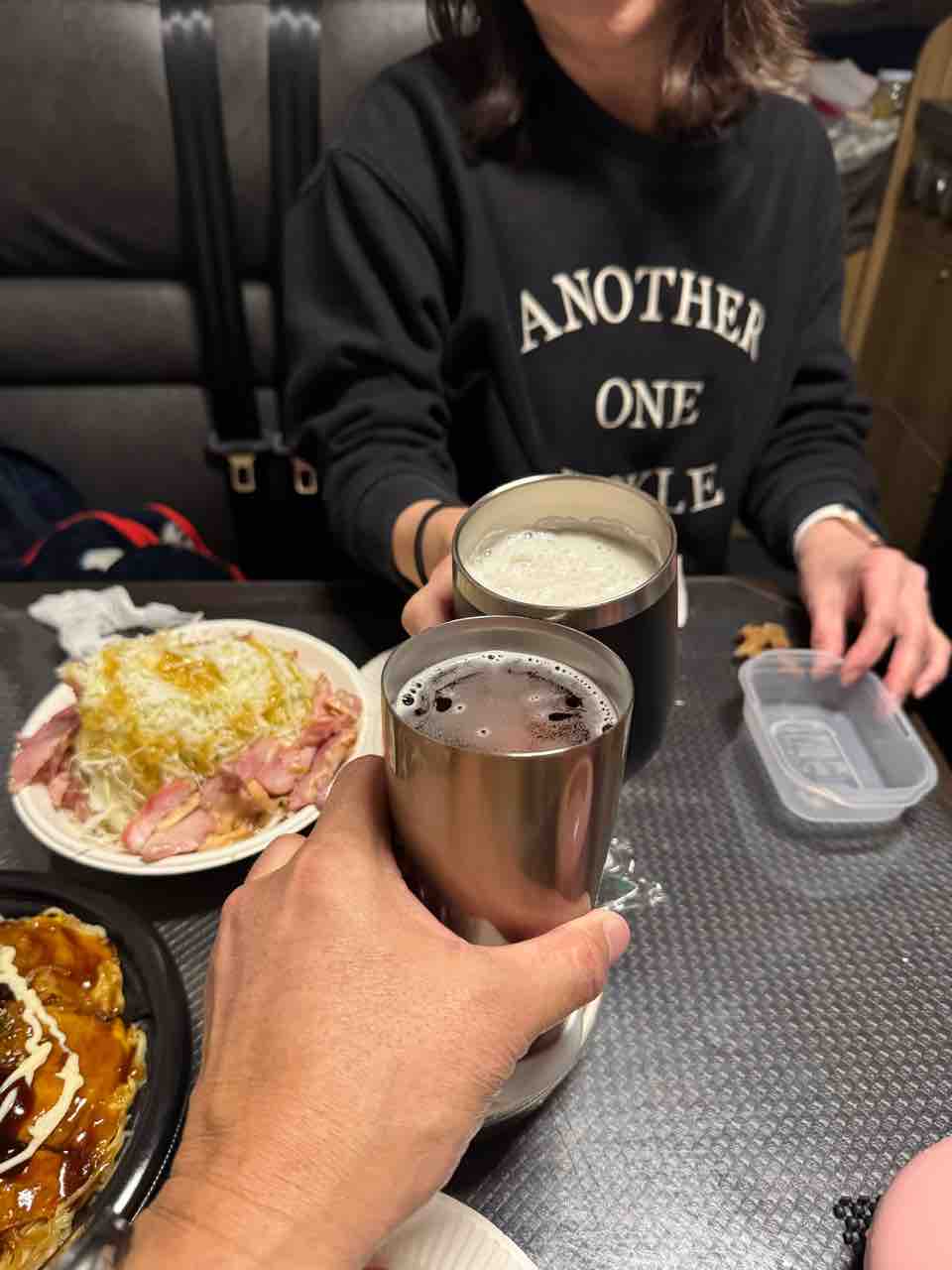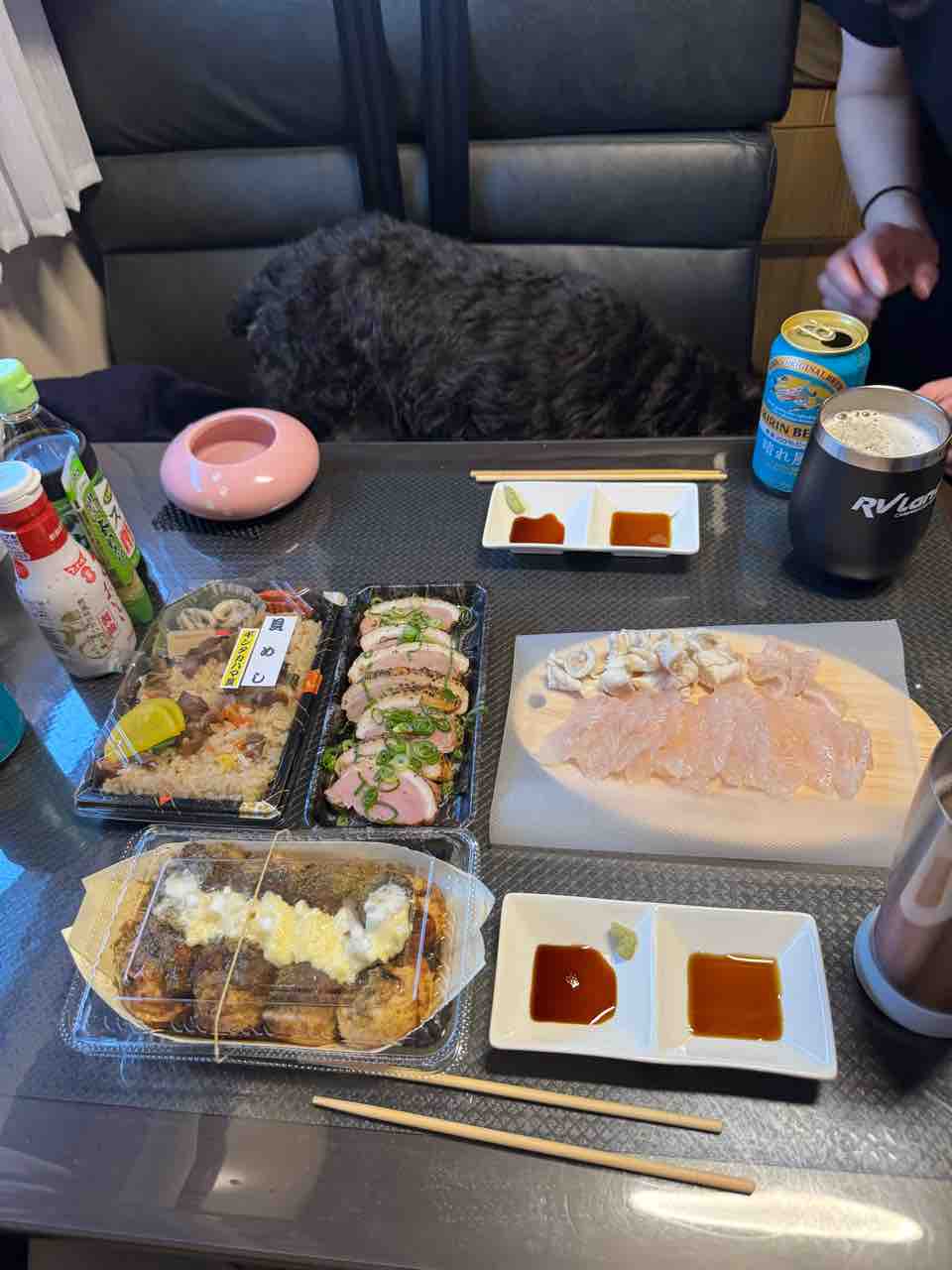 コストコで買った食材で乾杯。すでに遅くなっていたので、