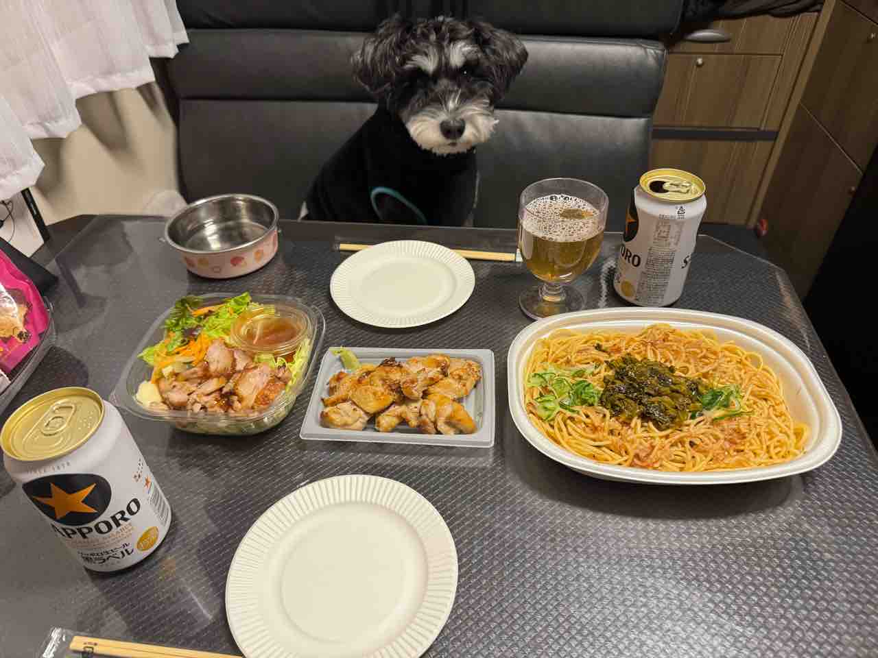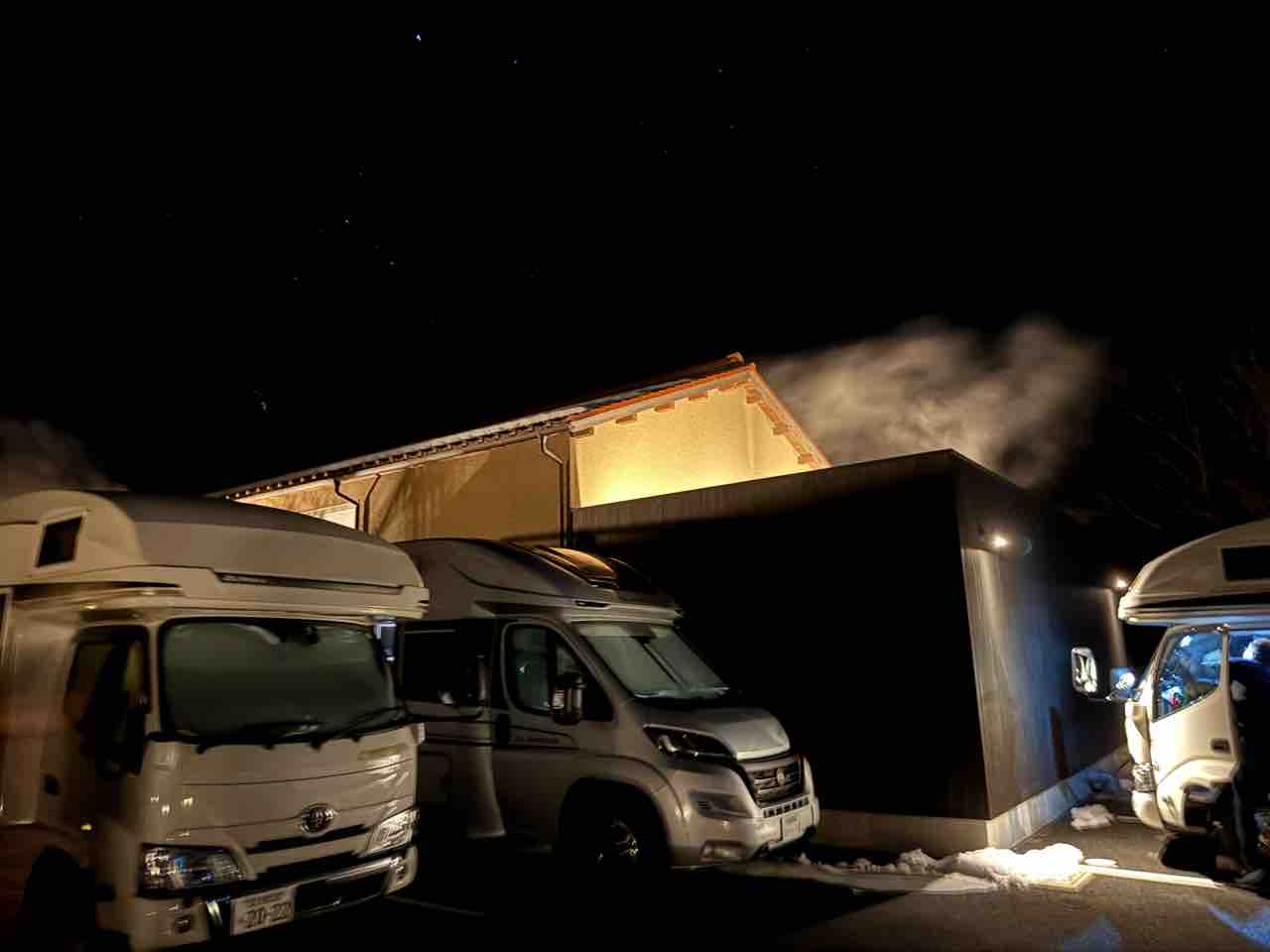 ここは事前に車中泊の許可をとってあり、食事と温泉が楽しめるので便利。