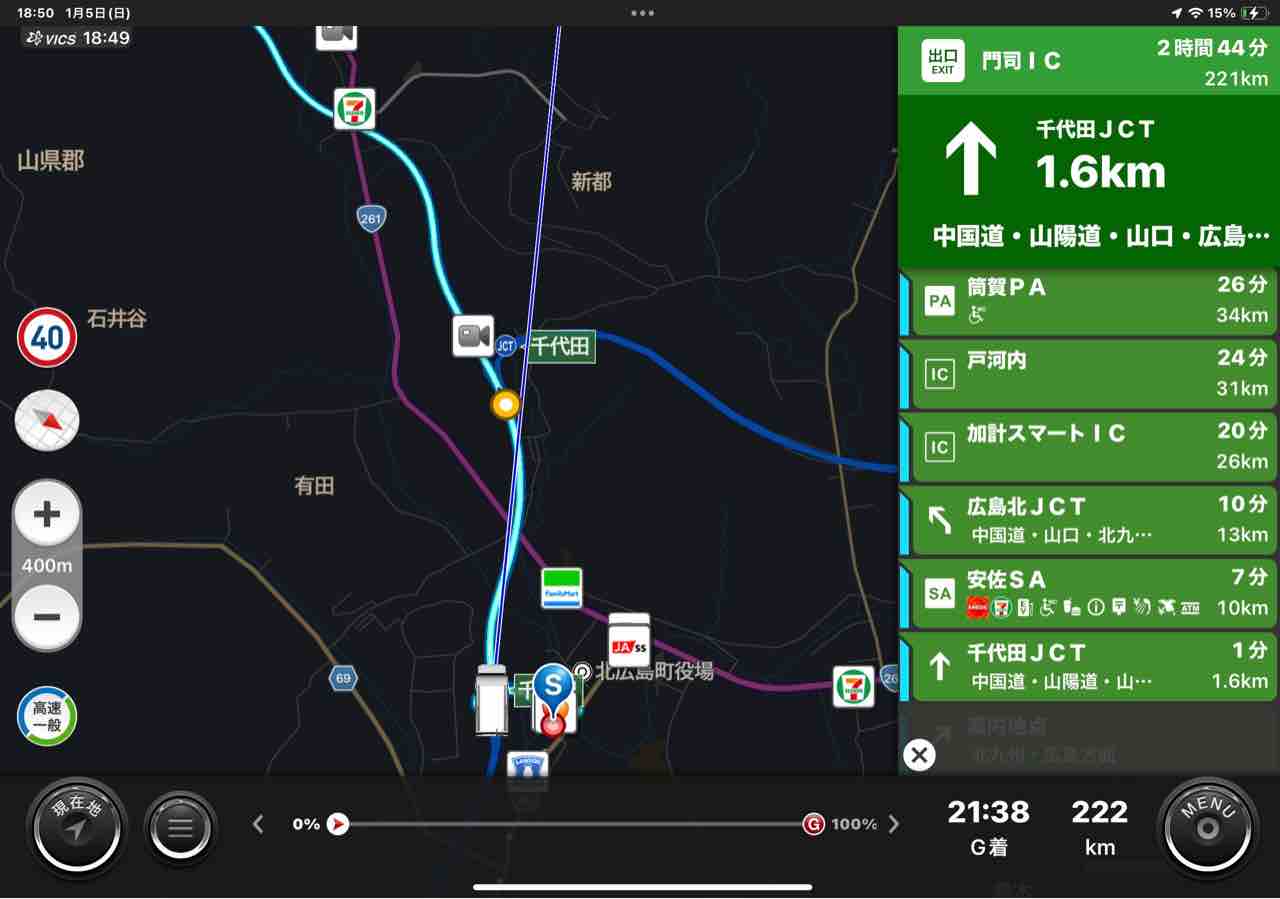 今回は中国道に沿ってスタンプを押して、最後は高速に乗る予定。