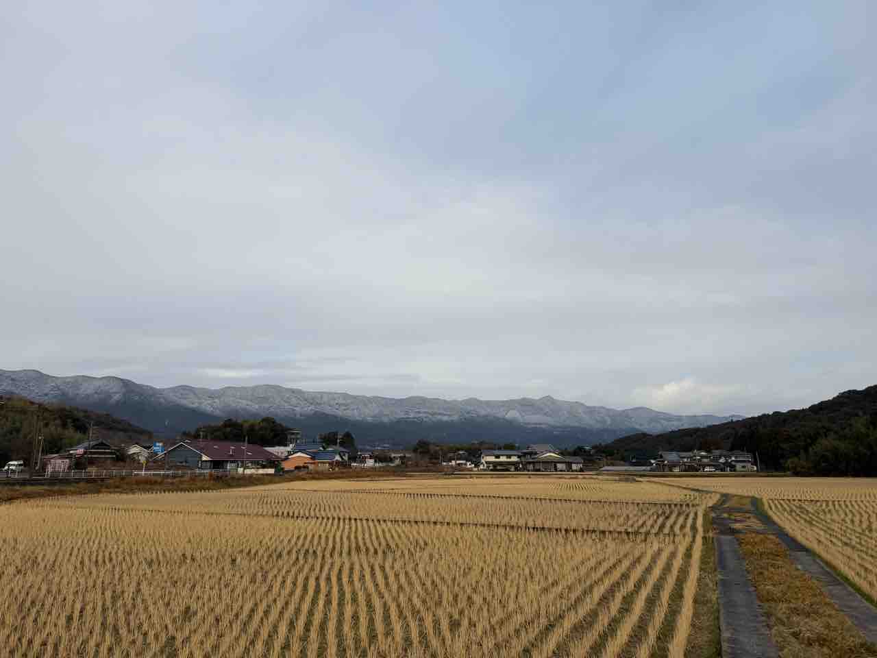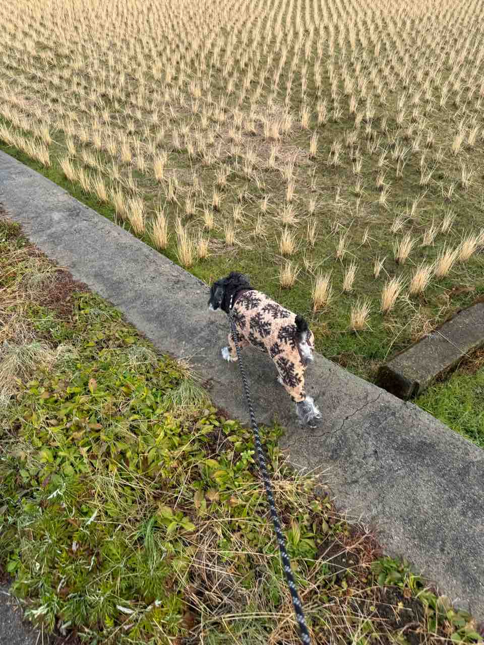温そうな服を着て、田んぼの畦道を元気にお散歩。
