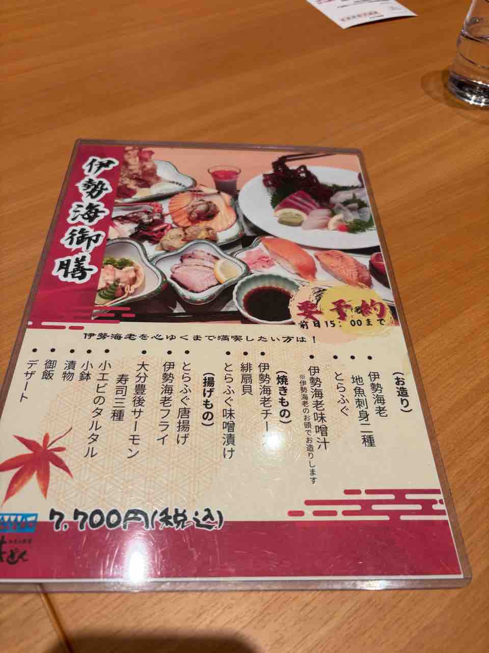 伊勢海老料理のコースは、この1点のみ。