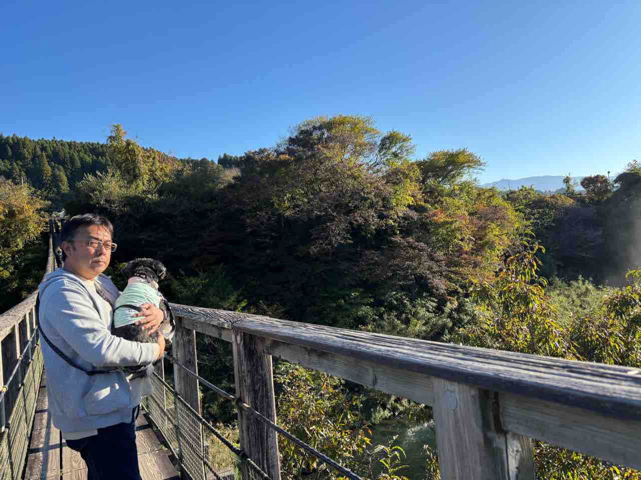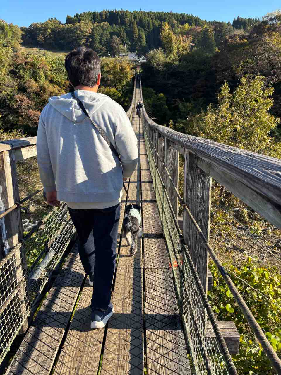 そして、吊り橋よりもその先にいる他のお客さんに怖がります。