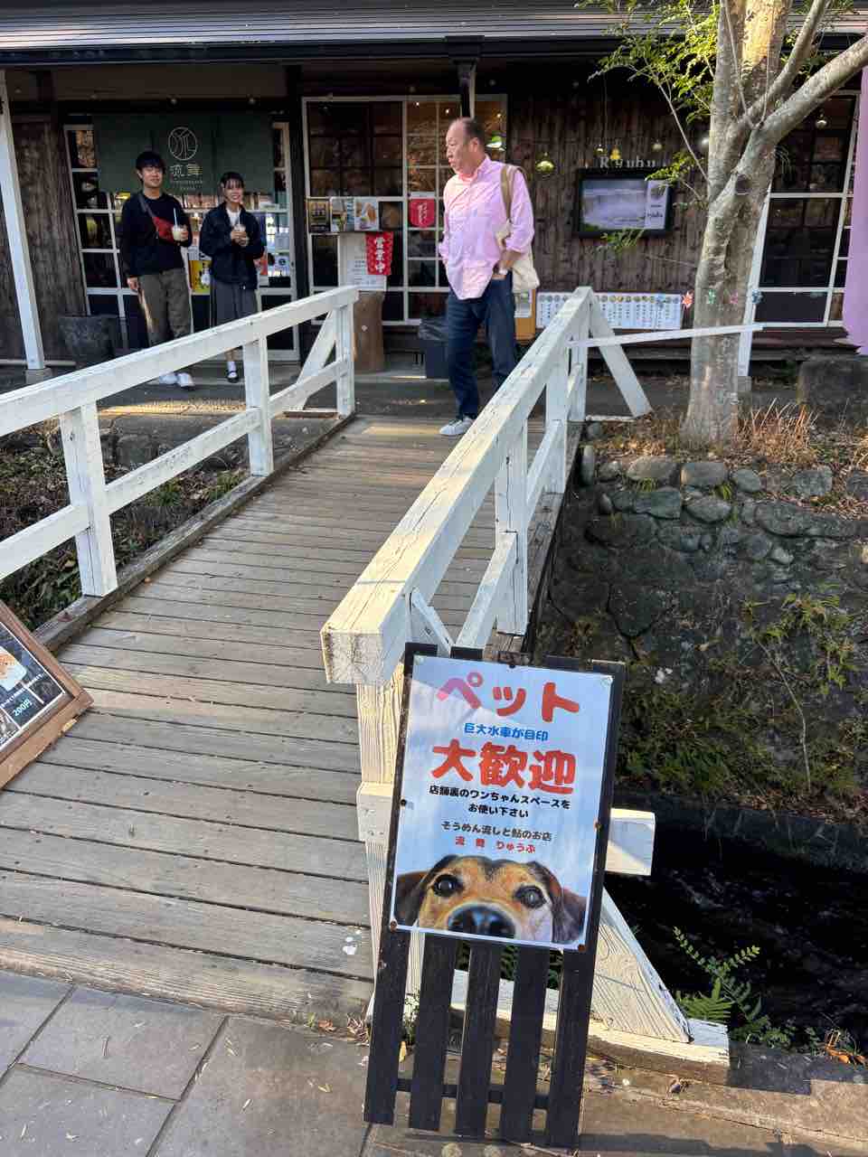 駐車場に戻る間にこんなお店が。ペットOKなので小休止。